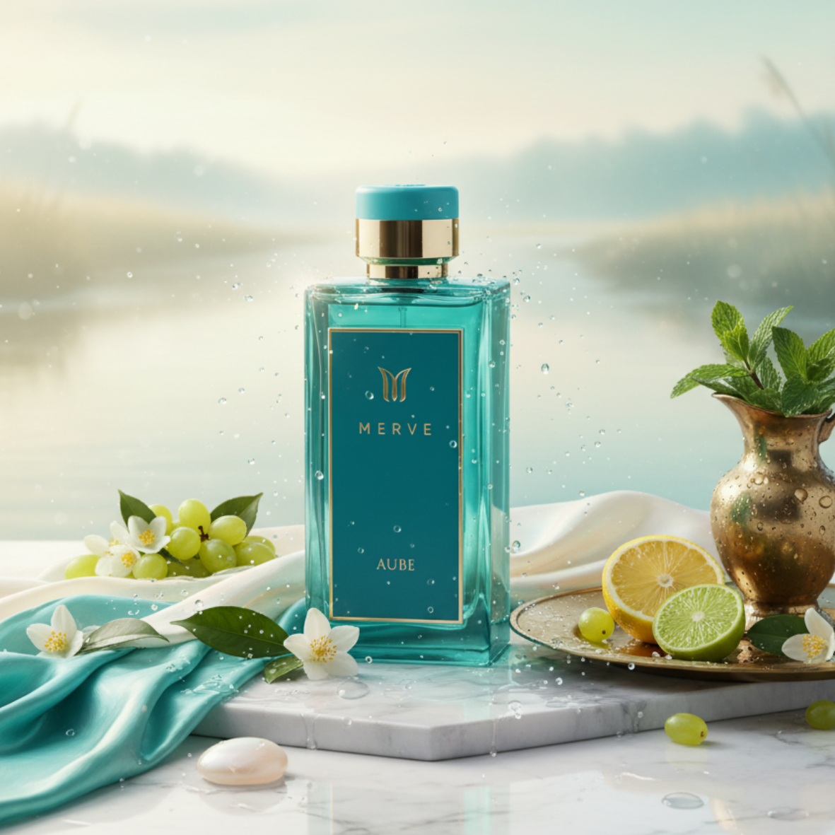Merve Aube is like a fresh dawn—gentle, warm, and full of promise. Fruity and floral notes mingle with soft amber, while hints of citrus and musk add a refined elegance, making it as refreshing as a new beginning.