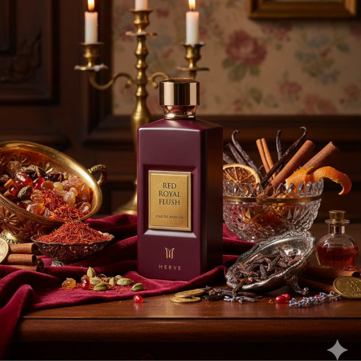 Fit for royalty, Merve Red Royal Flush combines amber, oud, and lavender for a warm, musky blend. Sweet spices add depth, creating a fragrance that’s sophisticated, luxurious, and unmistakably regal.